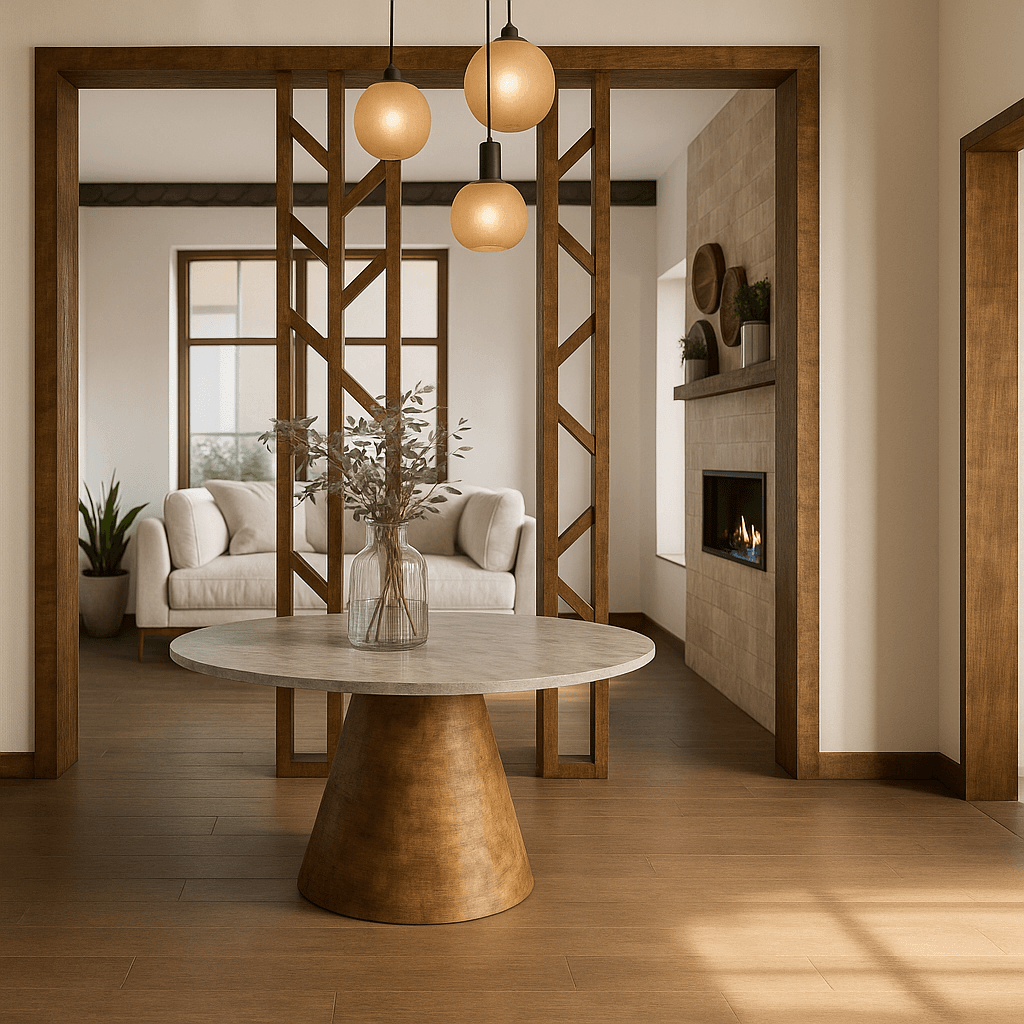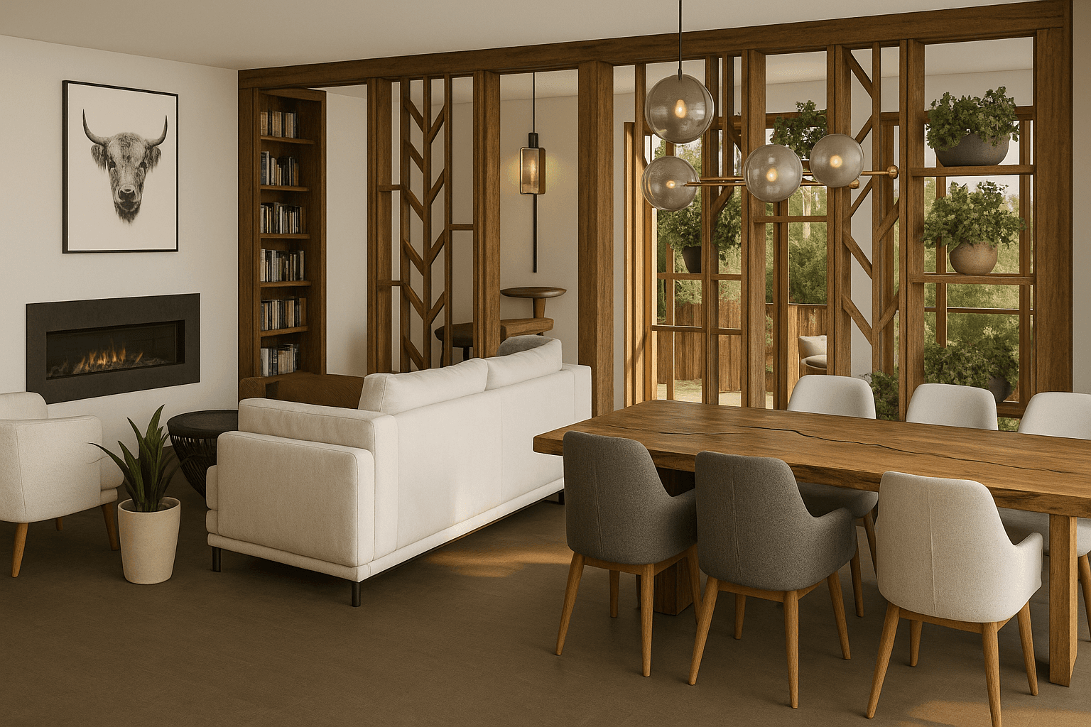 En el interior de la vivienda, se ha priorizado la integración de texturas naturales y elementos vegetales como estrategia para enriquecer la calidad espacial y fomentar el bienestar de los habitantes. La incorporación de materiales como la madera y piedra, seleccionados por sus propiedades táctiles y visuales, busca establecer una conexión sensorial con el entorno natural, aportando calidez y autenticidad a los espacios.